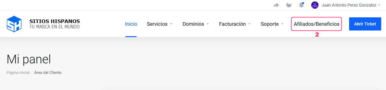 En tu Área de Cliente ingresá a "Afiliados/Beneficios" que verás en el menú superior.