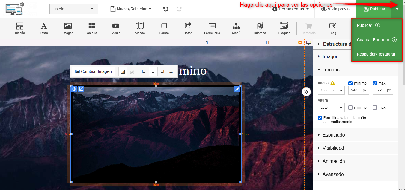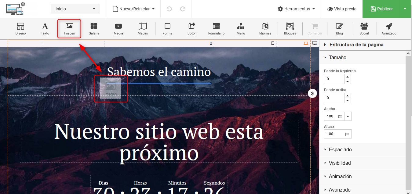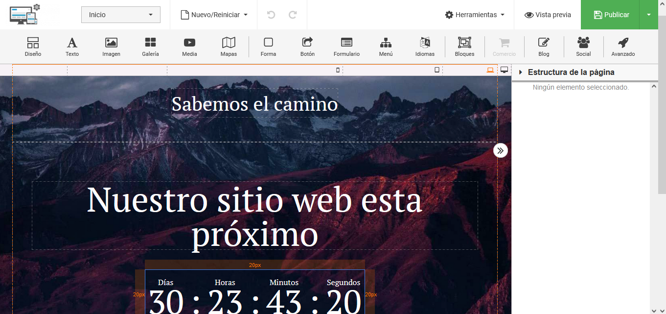 Vamos a dar los primeros pasos dentro del **Constructor de Sitios Web**.