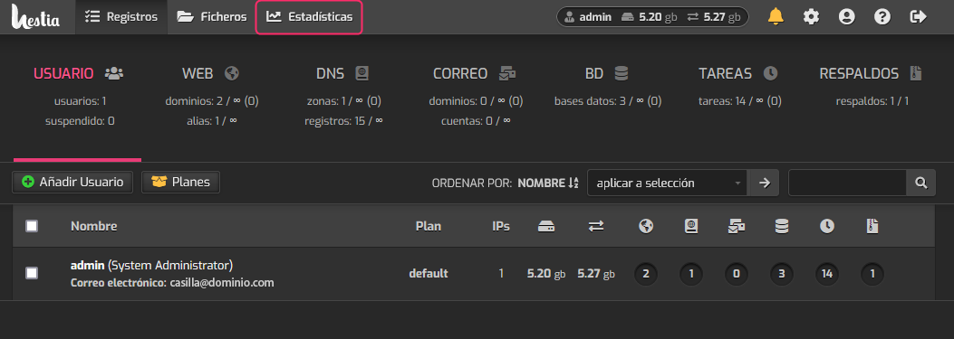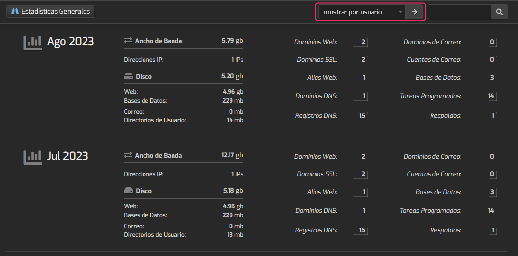 # ¿Cómo ver las estadísticas de consumos en HestiaCP?
