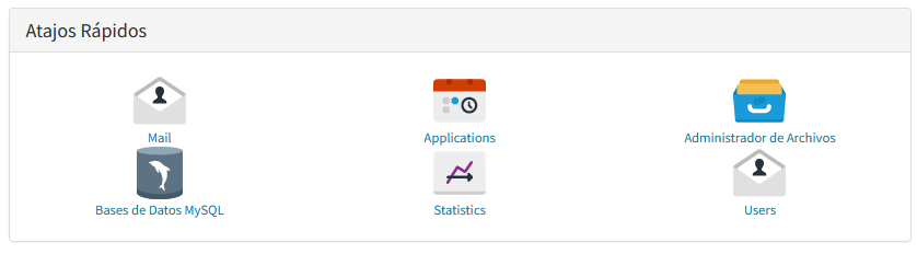 4. En esta misma pantalla verás, debajo de todo, el cuadro **Atajos Rápidos** con accesos directos a las herramientas más utilizadas del panel de control **Plesk**.