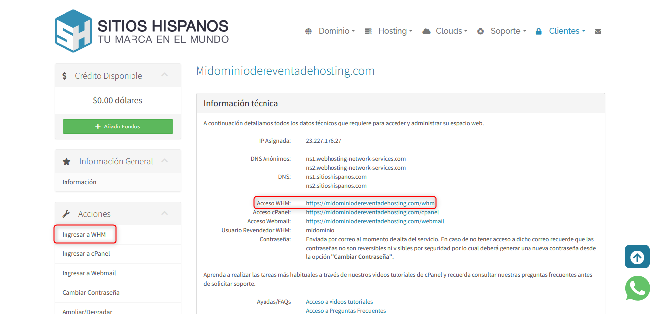 Si tu plan es Revendedor Ingresá al panel WHM con cualquiera desde estas direcciones web: