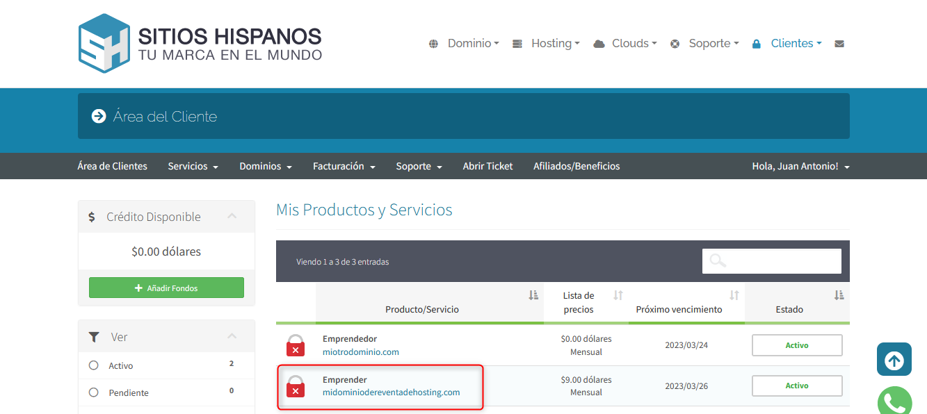 Acceso desde el área de cliente: